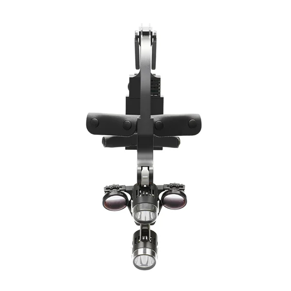 Unique design is a true innovation. Two lights are merged around operators working distance and creating shadow less effect. Magnification lenses are attached to the middle of two lights and moving together with lights. Ergonomic C-band design uniquely distributes weight to forehead, top of the head and rear head.